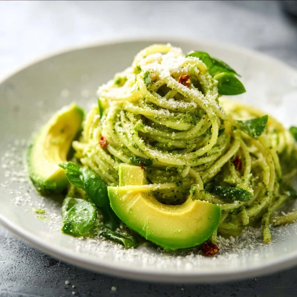 A quick and creamy dish featuring vibrant flavors of basil and avocado, perfect for a weeknight dinner or light lunch.