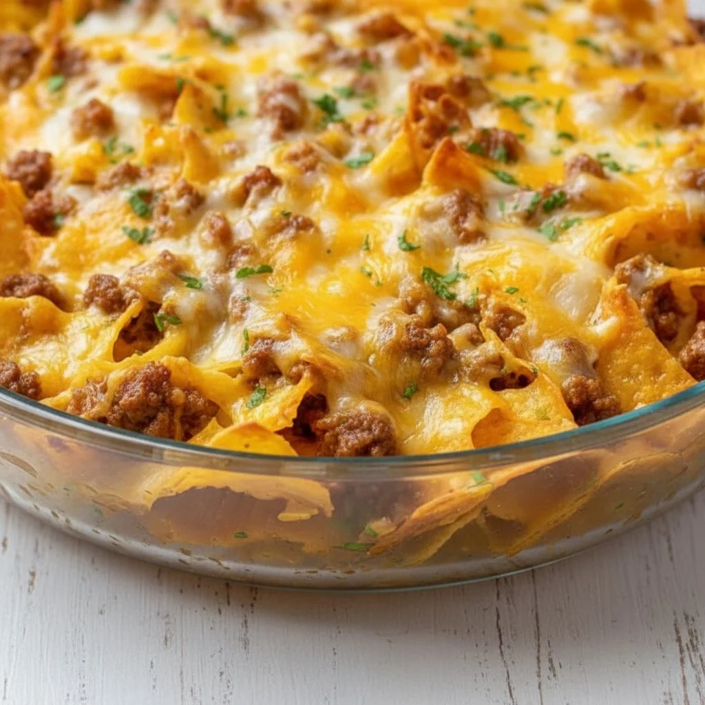 A comforting breakfast casserole made with layered tortillas, sausage, and melted cheese, perfect for feeding a crowd.