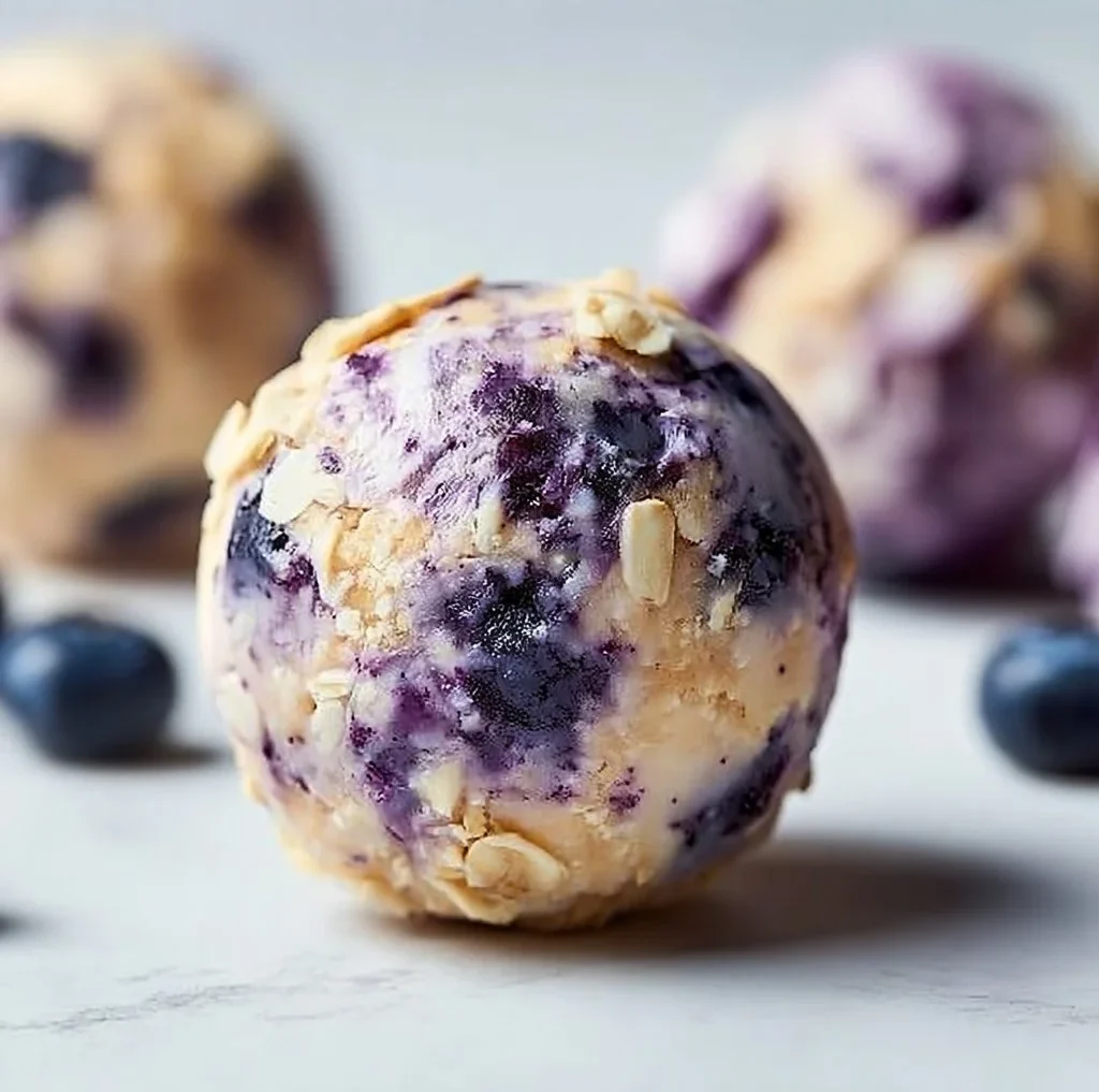 These Blueberry Cheesecake Protein Bites are a perfect snack that blends the creamy taste of cheesecake with the freshness of blueberries for a guilt-free treat.