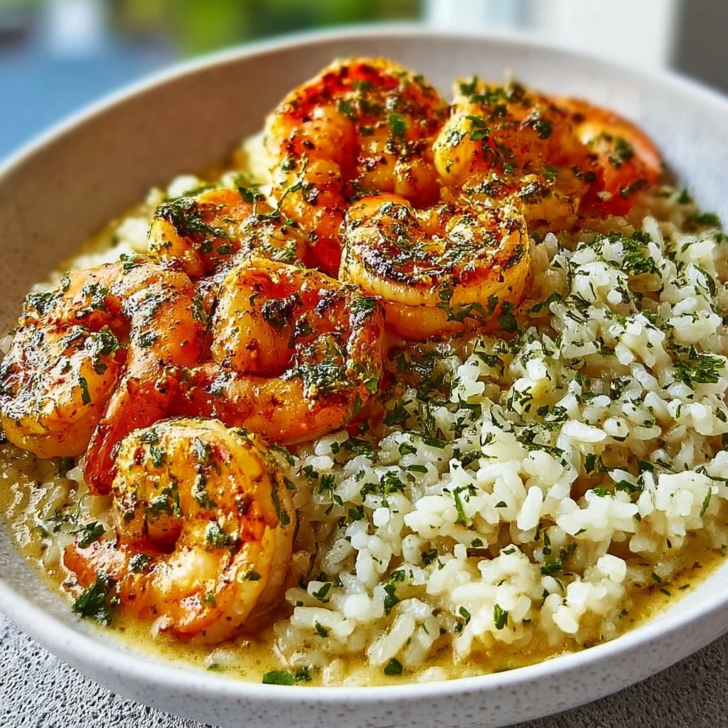 Creamy Herb Rice with Garlic Butter Shrimp Bowl