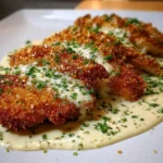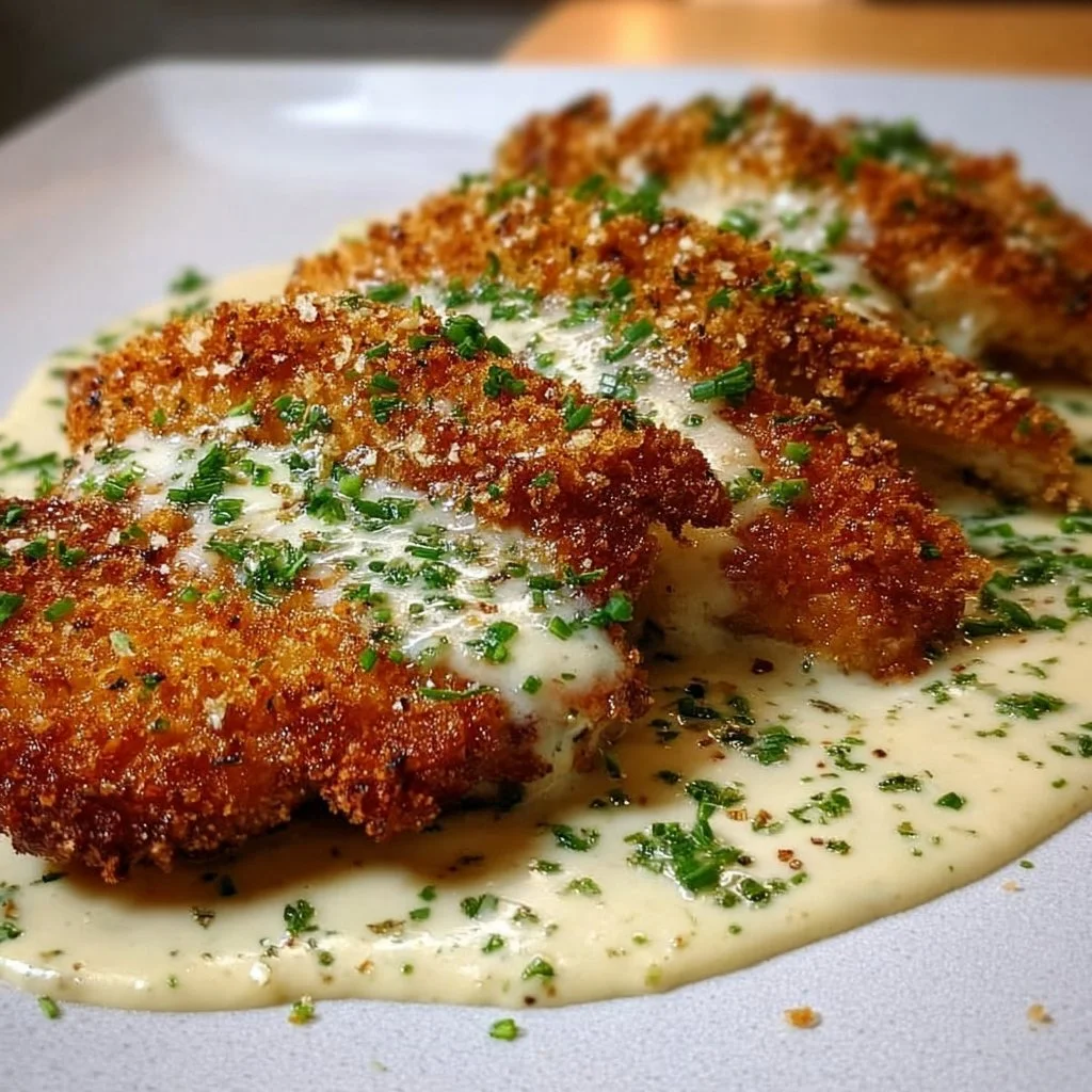 Crispy Parmesan Chicken with Garlic Cream Sauce