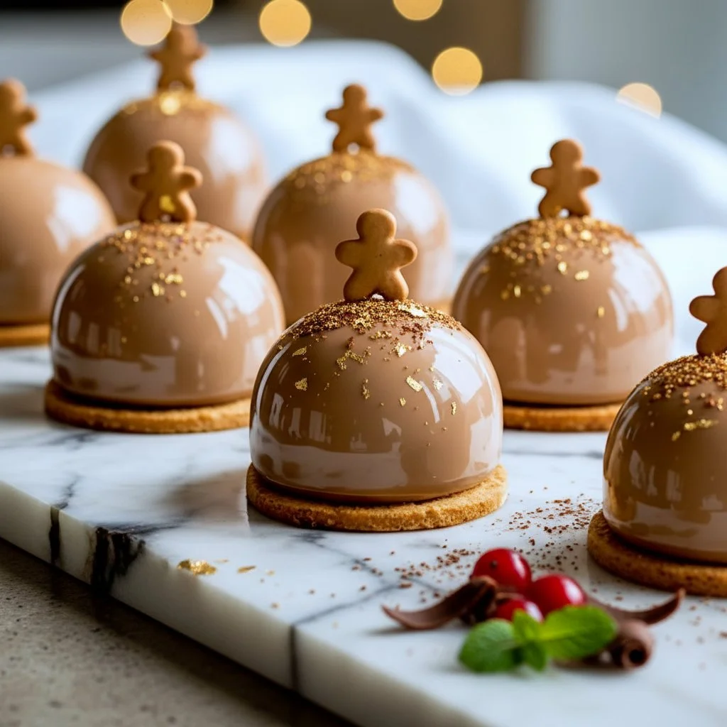 Delightful gingerbread-flavored mousse domes, perfect for holiday gatherings.