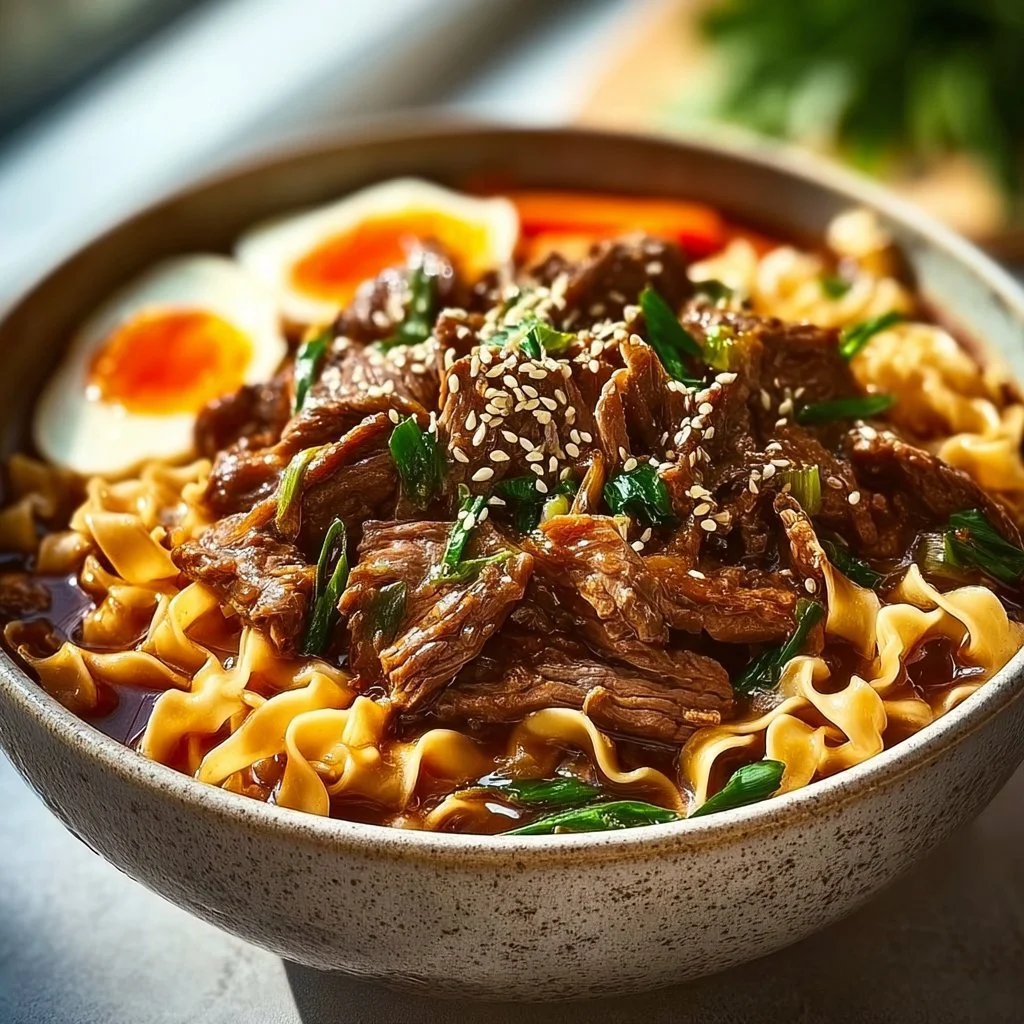 Cook low and slow so the beef becomes tender and rich. Taste the broth before serving and add salt or soy if it needs more body. Add the noodles near the end so they do not get mushy. If you plan to store leftovers, cook the noodles separately and add when reheating.
