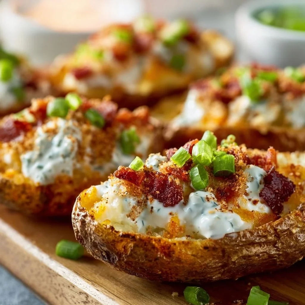 Crispy, cheesy, and packed with flavor, these loaded potato skins make a perfect appetizer or game-time treat.