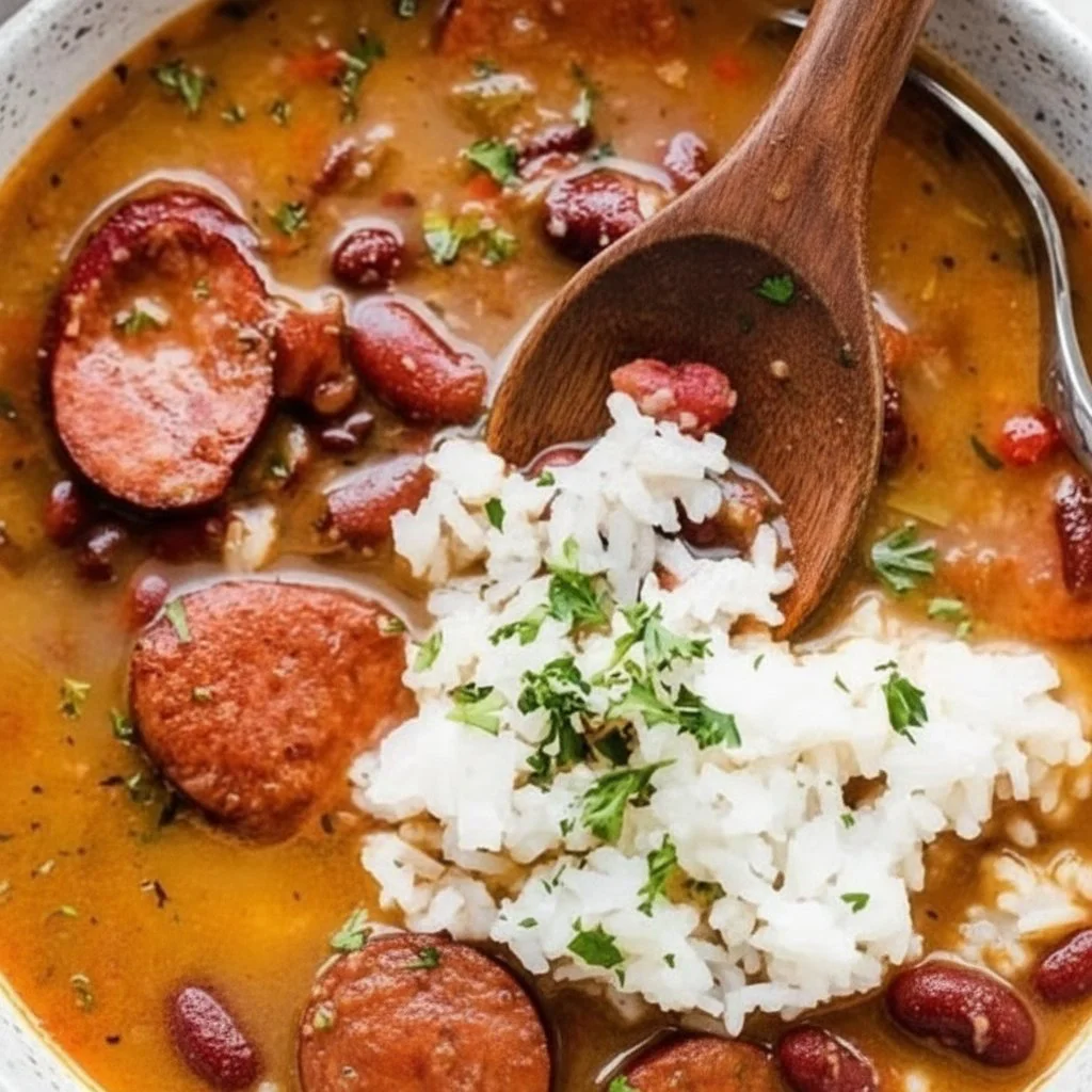 A comforting Louisiana classic that combines rich flavors with tender red beans and rice, perfect for family gatherings.