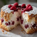 Keywords: angel food cake, raspberry cake, summer dessert, light cake, baking